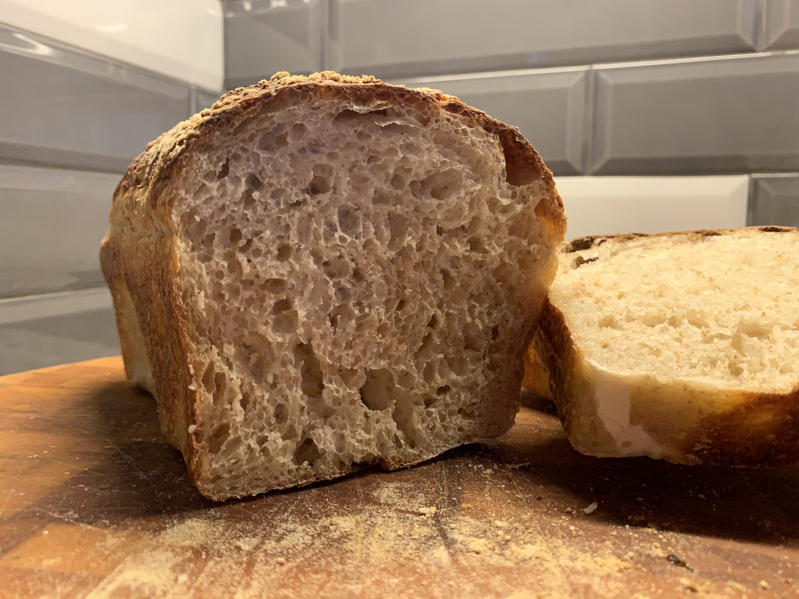 Sourdough Proof of BreadA well-proofed loaf in a baneton.Sourdough Mise en PlaceIngredients for a beer-based sourdough set out on a countertop.Honey Brown Lager BreadA loaf of sourdough inside the oven.Sour HeelThe heel of a loaf of sourdough bread rests on a cast iron pan.Guinness Sourdough IngredientsIngredients for a loaf of beer-based sourdough.Honey Brown Lager BreadA loaf of sourdough cools on the countertop.Slice of SourA slice of sourdough bread rests on a cutting board.